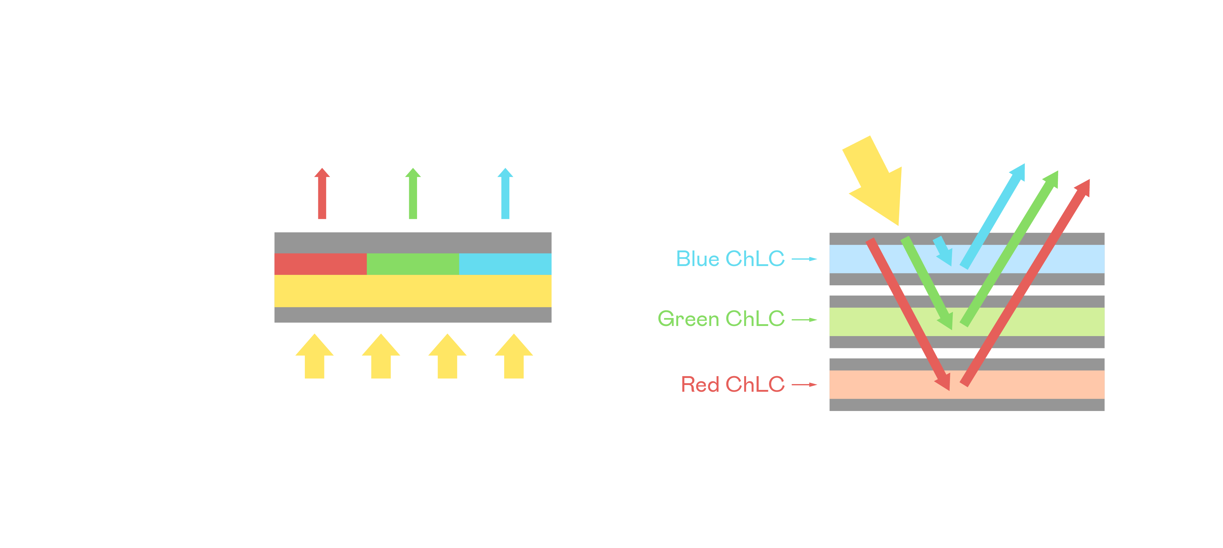 金年会|jinnianhui胆固醇液晶显示器是由红、绿、蓝三层胆固醇液晶面板堆叠而成,并采用无彩色滤光片设计,减少环境光在反射过程中的损耗。