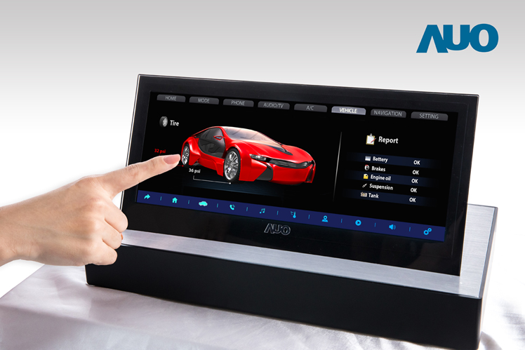 12.3 寸 Full HD LTPS 显示屏同样具备 1000 nits 高亮度,搭载内嵌式触控技术,整合驱动与触控 IC 于显示屏制程,使显示屏厚度降低,为中控台创造更多机构设计空间。应用于抬头显示器的 3寸 LTPS 显示屏具有高穿透率、1200:1 高对比度度,以及 297 PPI 高画素密度。液晶最高可耐受到 110°C 的高温 (TNI) 而不液化,在阳光高温下维持优异稳定的显示效果。